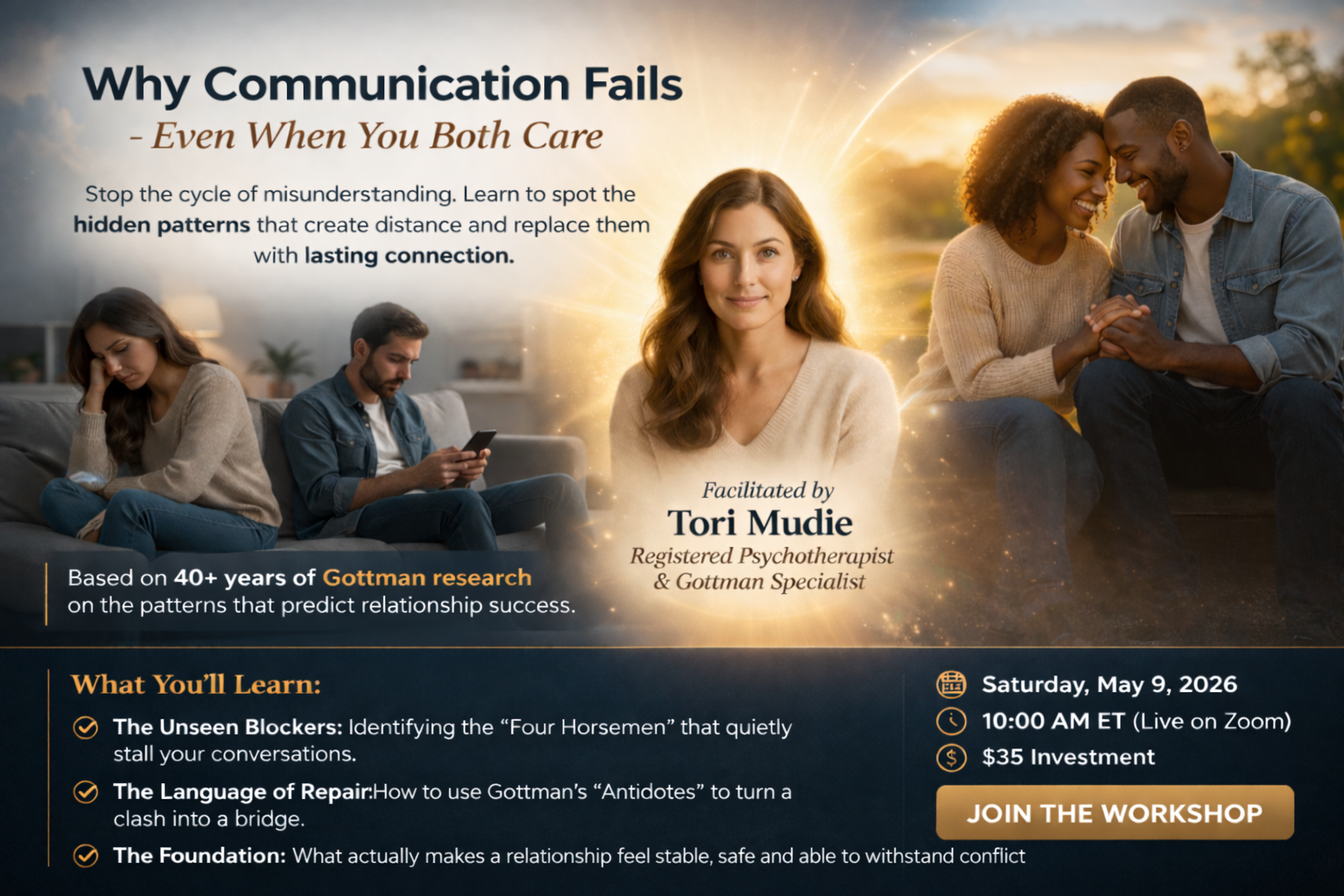 A live workshop on the communication patterns that turn small disagreements into the same recurring battle.